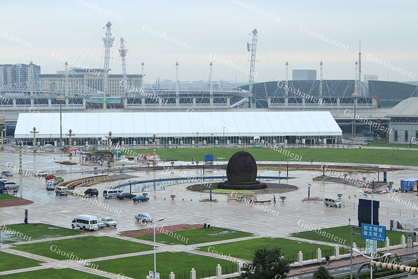 此次高山篷房還為汽博會提供大量的內部配套設施,例如中央空調、地板、玻璃門、玻璃墻、燈光舞臺等。我們通過做好相應的配套設備,力求為所有大型車展,慶典,活動等提供服務,讓客戶省心與安心。