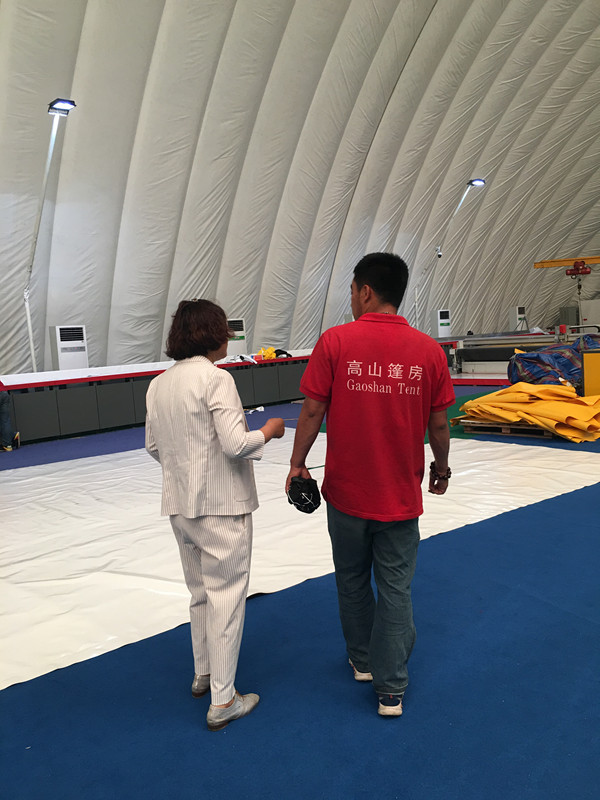 原來,每一個項目在交給客戶之前,都必須進行篷房的試搭工作,在試搭的過程中需檢驗產(chǎn)品的質(zhì)量是否過關(guān)、搭建技術(shù)是否過硬,經(jīng)檢驗合格后方可交到客戶手上。
