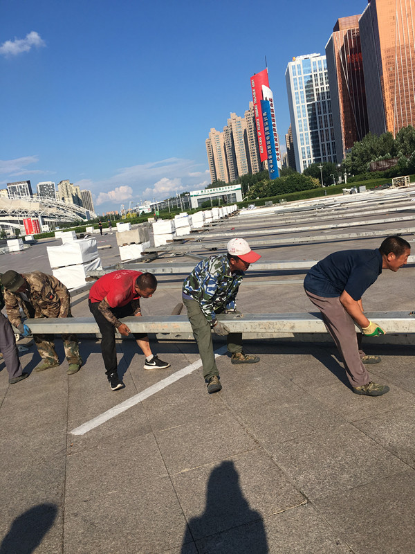 在由高山搭建的4座篷房內,為期六天的哈洽會圓滿落下帷幕,但,高山拆裝團隊的工作尚未結束——展覽用過的篷房需盡快拆裝,轉運到東廣場用于科技展覽。