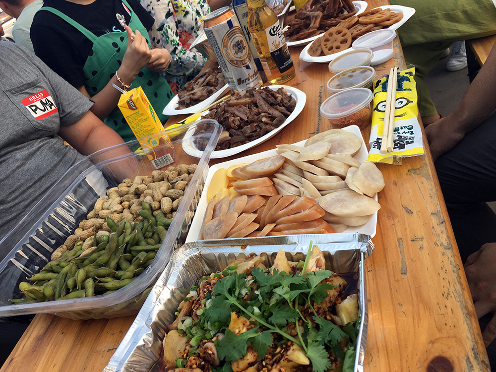 小龍蝦、大飛蟹攜海螺、蜆子等小兵霸氣上桌,狗肉、燒雞、鴨脖等熟食鹵味蓄勢待發(fā),各種涼菜和水果也不甘示弱,這時重量級嘉賓烤全羊閃亮登場,而主角啤酒大哥則言簡意賅:開喝!