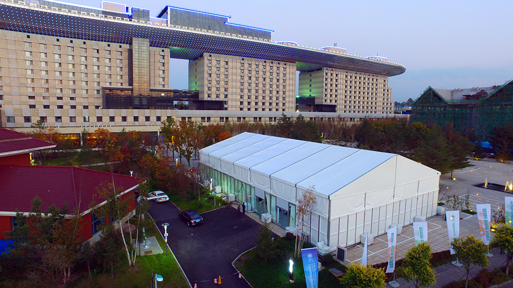 使用年會篷房的好處可太多了:篷房可以搭建于戶外,單獨營造一個年會場館,按參加的人數(shù)和需求面積進行選擇。工期短,受地形制約小,費用和一般租賃場地差不多。篷布可以定制logo噴涂,并且有法式飄窗和全透明篷布,玻璃墻等升級墻面。內(nèi)部無立柱設計可兼容燈光,音響,投影,布幔內(nèi)飾設施,滿足品牌定制化服務。